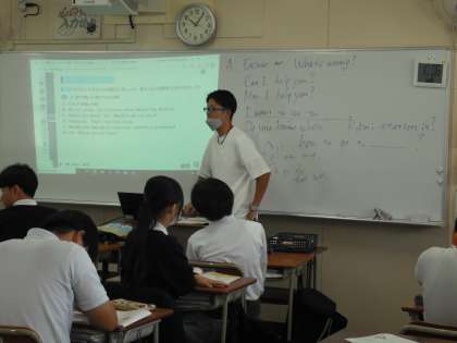 「Would you like〜?」という構文を使い、街中での手助けをテーマにした英会話に挑戦しました。生徒たちは、実際の場面を想像しながら楽しそうに会話練習を行っていました。
