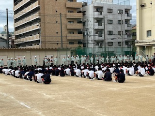 学校・地域合同防災訓練☆避難訓練10月11日 公開日 2025/10/11 更新日 2025/10/11 お知らせ まず初めに、避難訓練を実施しました。 「東階技術室より出火」という火災発生の想定放送が流れると、生徒たちは落ち着いて廊下に整列し、指定された避難経路を通って避難場所へと移動しました。 日ごろの訓練の成果もあり、どの学年も迅速に行動することができました。 いいね(0)