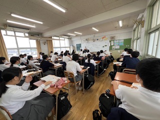 今日の授業☆2年生家庭科10月15日 公開日 2025/10/15 更新日 2025/10/15 お知らせ 食事の役割と中学生の栄養の特徴について学習しました。 写真は、「朝ごはんの役割」について意見を出し合っている様子です。 いいね(0)