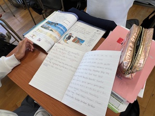 今日の授業☆1年生英語科10月17日 公開日 2025/10/17 更新日 2025/10/17 お知らせ 一般動詞を使った文の学習をしました。特に、主語が三人称単数の場合に「does(ダズ)」を使うことや、動詞の形が変わることについて、学びを深めました。 いいね(0)