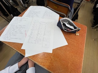 今日の授業☆3年生社会科10月17日 公開日 2025/10/17 更新日 2025/10/17 お知らせ 3年生は、社会科で先週実施された中間テストの解答が返却されました。生徒たちは、先生の解説を聞いたあと、自分の間違えたところを丁寧に確認していました。 いいね(0)