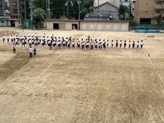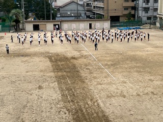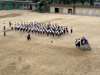 運動会に向けてグラウンドで体型や行進、ラジオ体操などの練習を行いました。