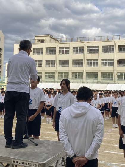 第76回運動会☆表彰式10月24日 公開日 2025/10/24 更新日 2025/10/24 お知らせ 各学年の優勝クラスにトロフィーを授与しました。 1年2組、2年3組、3年1組 の皆さん、優勝おめでとうございます! どのクラスも仲間と力を合わせ、最後まで本当によく頑張りました。 練習の成果とクラスの団結が光る、素晴らしい運動会となりました。 いいね(0)