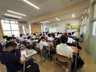 今日の授業☆1年生英語科10月27日 公開日 2025/10/27 更新日 2025/10/27 お知らせ 助動詞「can」について学習しました。 さまざまな場面を例にした英文を通して、「〜できる」という表現の使い方を楽しく学び、理解を深めていきました。 いいね(0)