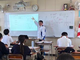 今日の授業☆3年生数学科10月27日 公開日 2025/10/27 更新日 2025/10/27 お知らせ 二次関数 y = ax2について学習しました。 グラフの形や変化の様子を調べながら、一次関数との違いを理解していきました。 いいね(0)