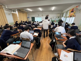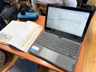 新しく配布されたChromebookを活用し、Google Classroom上でデータのやり取りを行いました。生徒たちは操作に慣れながら、デジタルツールを使って効率的に学習を進めていました。