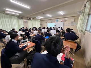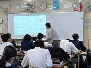 今日の授業☆3年生数学科10月31日 公開日 2025/10/31 更新日 2025/10/31 お知らせ 二次関数の応用として「つながっていない関数」について学びました。 宅配便の距離と料金の関係を題材に、料金が一定の区間ごとに変化する関数を調べました。 生徒たちは、実際の料金表をもとにグラフを描き、日常生活に関係する数学の考え方を興味深く学んでいました。 いいね(0)
