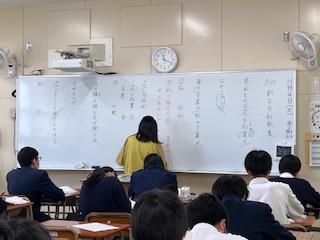 それぞれの時代の和歌の特徴や表現のルールを確認したあと、一首一首の作品を丁寧に読み取り、作者の心情や情景を味わいました。