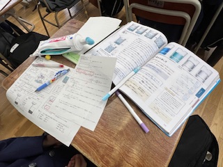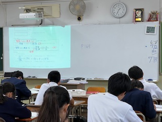 今日の授業☆1年生理科11月5日 公開日 2025/11/05 更新日 2025/11/05 お知らせ 「水溶液の性質」について学習しました。 写真は、質量パーセント濃度の計算問題に挑戦しているところです。 生徒たちは、溶けた物質の量と濃さの関係を考えながら、意欲的に問題に挑戦していました。 いいね(0)