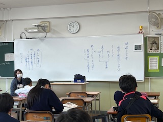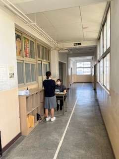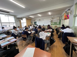 今日の授業☆1年生国語科11月6日 公開日 2025/11/06 更新日 2025/11/06 お知らせ 『竹取物語』の暗唱テストに挑戦しました。 テストは廊下で一人ずつ行われ、緊張しながらも、これまでの練習の成果をしっかりと発表していました。 教室内では、順番を待つ間に暗唱の練習をしたり、課題に取り組んだりする姿が見られました。 いいね(0)