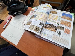 今日の授業☆1年生社会科11月6日 公開日 2025/11/06 更新日 2025/11/06 お知らせ 「古代の四大文明」について学習しました。 それぞれの文明が発展した地理的条件や、当時の人々の暮らしの様子に注目しながら、文化の違いや共通点について考えました。 川のそばで発展した理由や、文字や建築などの工夫に気づくなど、歴史のはじまりに興味を広げる学習となりました。 いいね(0)
