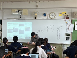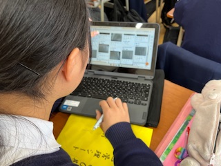 今日の授業☆2年生国語科11月7日 公開日 2025/11/07 更新日 2025/11/07 お知らせ 「動物園でできること」という単元のまとめとして、これまでの学びをふり返りながら、この単元のゴールについて意見を発表し合いました。 写真は、クラスルームを使ってお互いの意見を共有し、タブレット端末で確認しながら活発に意見交流をしている様子です。 友だちの考えを聞き、自分の考えを見つめ直す姿が見られました。 いいね(0)