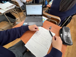 今日の授業☆2年生社会科11月12日 公開日 2025/11/12 更新日 2025/11/12 お知らせ 戦国時代の末期から豊臣秀吉の天下統一までの流れについて詳しく学習しました。 生徒たちは当時の武将の動きや時代の背景を調べながら、国の統一に至る過程を理解していました。 いいね(0)