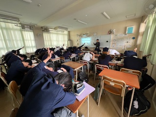 今日の授業☆3年生社会科11月12日 公開日 2025/11/12 更新日 2025/11/12 お知らせ 裁判の仕組みについて学習しました。 写真は、模擬裁判のデジタル映像を鑑賞した後、登場人物の行為が「罪にあたるのか」「有罪か無罪か」を考えている様子です。 いいね(0)