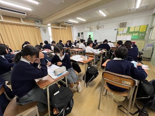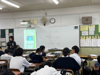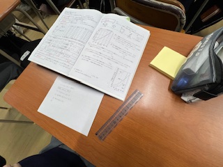写真は、応用問題に挑戦しながら、周りの仲間と意見を交流して解き進めている様子です。