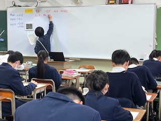 今日の授業☆2年生英語科11月13日 公開日 2025/11/13 更新日 2025/11/13 お知らせ 比較級・最上級の学習を進めています。 期末テストに向けて、問題プリントを使いながら表現の使い方を確かめ、理解を深めているところです。 いいね(0)