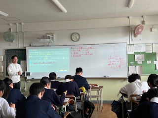 今日の授業☆1年生社会科11月19日 公開日 2025/11/19 更新日 2025/11/19 お知らせ 大和政権の特徴や当時の社会の様子について学習しました。 授業では、当時の人々がどのように暮らし、どのような政治がおこなわれていたのかを資料をもとに読み解きながら理解を深めていきました。 写真は、「古墳はなぜ作られたのか」という問いに対して、生徒たちが自分の考えを出し合っている場面です。資料を根拠にしながら積極的に意見を述べ合う姿が見られました。 いいね(0)