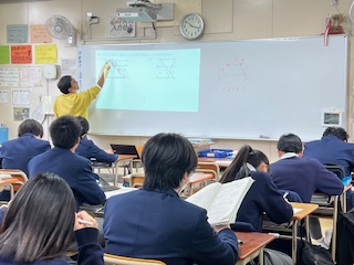 生徒たちは、図形の関係を丁寧に確認しながら、比の活用に挑戦していました。