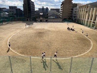 男子は運動場で長距離走に挑戦し、自分のペースを意識しながら粘り強く走る姿が見られました。