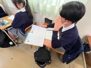 これまでに身につけてきた語彙や表現、文法の知識を活用しながら、先生から出された課題に一所懸命に取り組む姿が見られました。