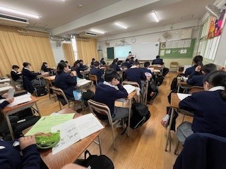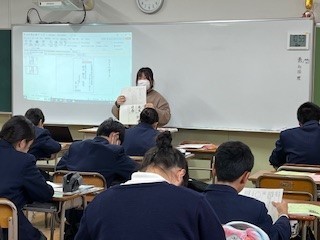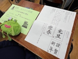 写真は、年賀状の書き方についてレクチャーがあり、相手に気持ちが伝わる表現や形式について学んでいるところです。