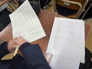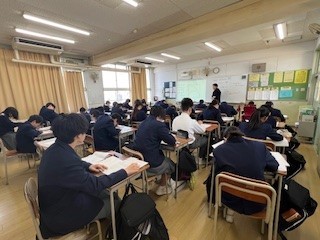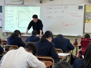 「最強の修業プリント」を用い、さまざまなパターンのおうぎ形の面積や弧の長さを求める問題に、生徒たちは意欲的に挑戦していました。