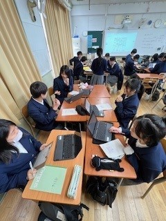 生徒たちは、その内容を発表するために役割分担を行い、協力しながら準備を進めている様子です。