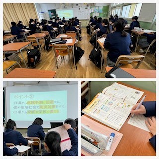 女子は教師で、傷害の原因と予防について、資料をもとに理解を深めました。日常生活の中で気を付けるべき点や、健康を守るための工夫について考える時間となりました。