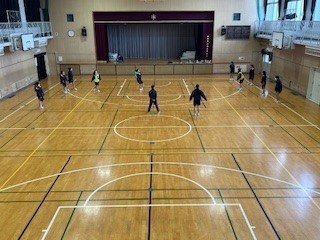 女子は体育館でグループに分かれ、ドッジボールに取り組みました。