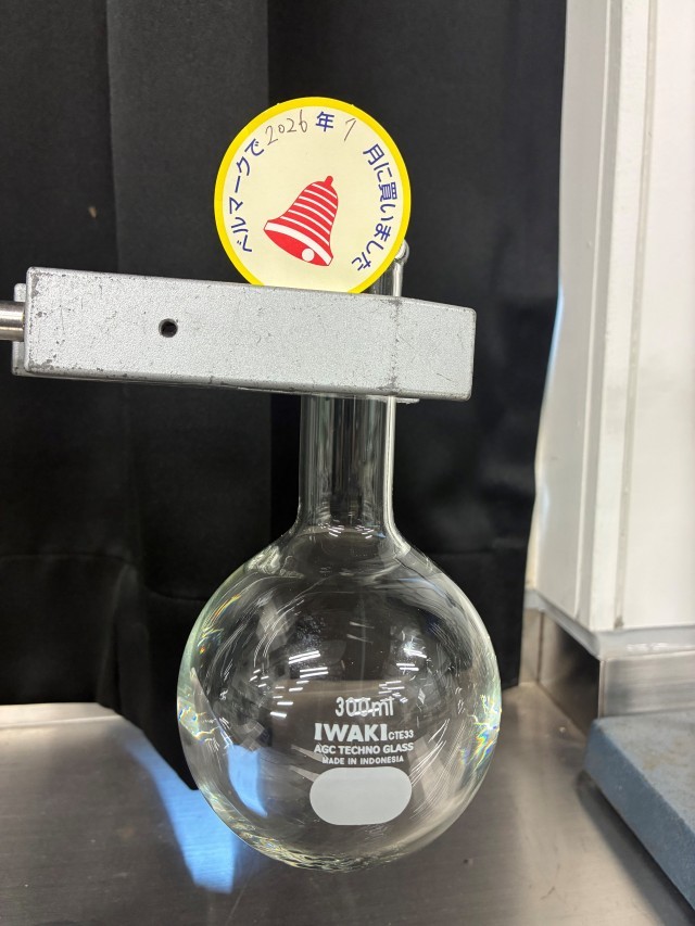 PTA実行委員の皆さまより、これまで集めていただいたベルマークを活用し、理科の実験用のフラスコ10セットを寄贈していただきました。