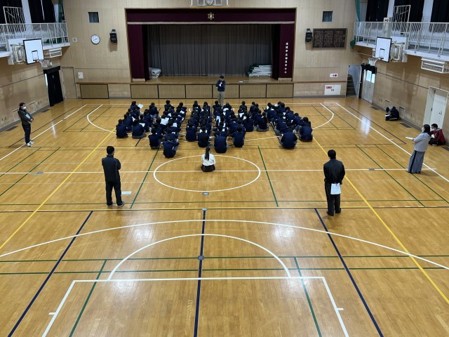 3年生私学入試事前指導☆2月9日 公開日 2026/02/09 更新日 2026/02/09 3年生 3年生は、明日から始まる私学入試に向けて、体育館で事前指導を行いました。 これまで積み重ねてきた努力を信じ、落ち着いて、そして自分らしく力を発揮してくれることを願っています。 いいね(0)