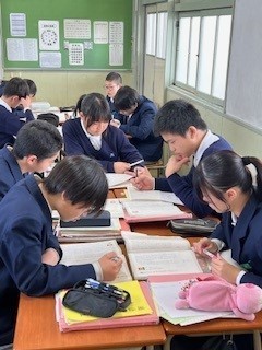 生徒たちは、文章から見出した課題について、「なぜ」そう言えるのか?という理由を班の仲間と話し合いながら整理し、答えを導き出していました。