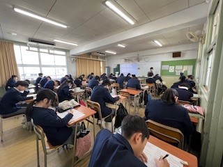 先週実施された学年末テストの再テストに取り組んでいるいる様子です。