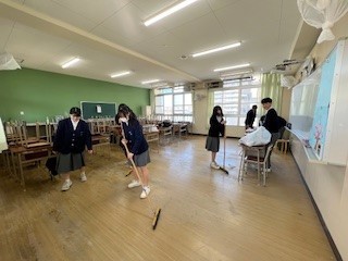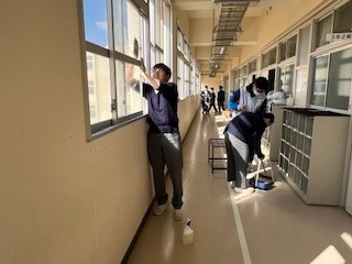 本日、受検のない3年生は、受検している仲間にエールを送りつつ、1年間お世話になった教室や廊下、トイレの清掃に取り組みました。