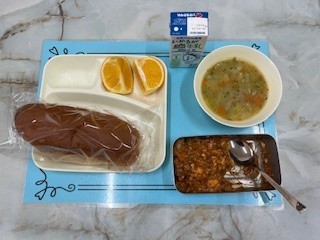【豆腐のミードグラタン じゃがいもと野菜のスープ はっさく 黒糖パン 牛乳】