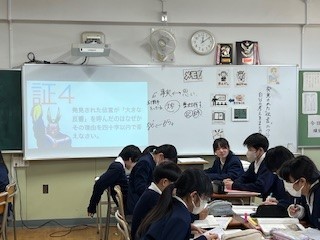 原子爆弾が投下された広島で、建物の壁に残された伝言をもとに書かれた文章を読み取りながら、当時の人々の思いや状況について考えました。文章を通して、戦争の悲惨さや平和の大切さについて理解を深める学習となりました。