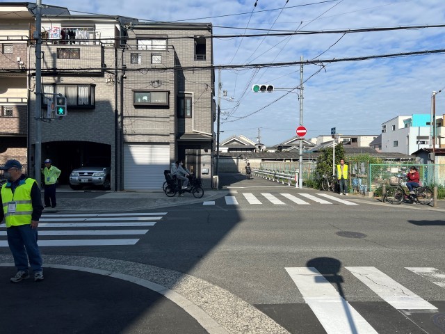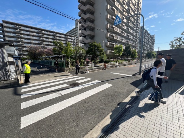 朝早くから、地域の方々やPTAの役員の方々が、生徒たちを見守ってくれています。