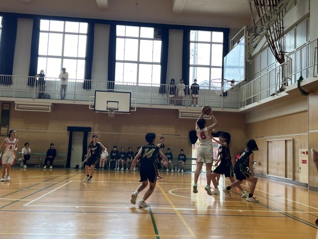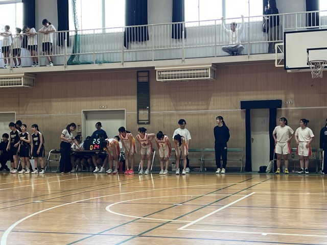 本日の午後に、女子バスケットボール部は「令和8年度大阪市体育大会春季総合 バスケットボールの部」の一回戦があり、鯰江中学校と対戦しました。第一クォーターで先行されましたが、第二クォーターで一時逆転しました。しかし、一生懸命に頑張ったのですが、相手チームが点数を重ね、38対56と惜しくも負けてしまいました。