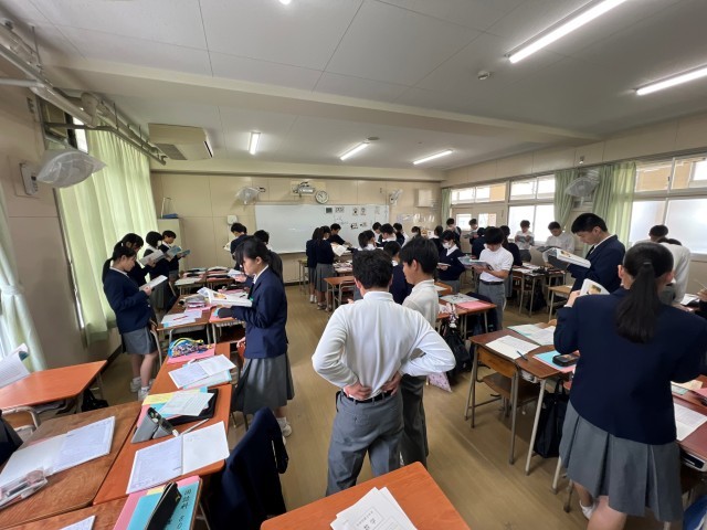 初めに、教科書を時間軸に注目して音読しました。