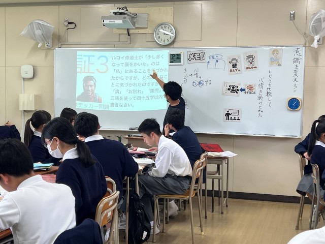 そして、登場人物の様々なしぐさから、どのような気持ちだったのかを読み取りました。子どもたちは、みんなで意見交換をしながら、登場人物の心情に迫っていました。