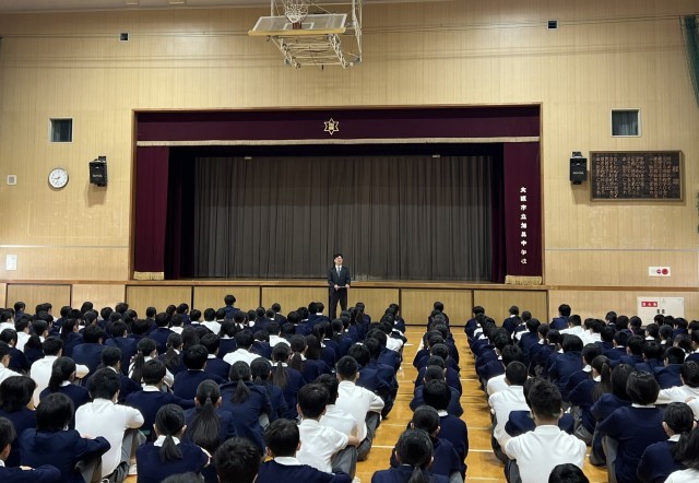 校長先生からは、「生徒会をはじめ、各委員の皆さんは、学校や学級を代表して活動する立場になります。ぜひ、自身の役割に責任をもって最後まで頑張ってください。皆さんの活躍があったからこそ、以下の加美中学校があります。また、周りの皆さんはいいんじゃないから関係ないよではなく、決まりを守ることや声かけに応じる、協力するなど自分にできることをしてほしいと思います。そのようにすることで、『加美中学校は楽しい、加美中学校で卒業しでよかった』と感じる学校になっていきます。みんなで支えあってより良い学校にしていきましょう」と話がありました。