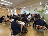 これまでの学習内容をもとに、リスニングテストにチャレンジしています。音声を集中し...