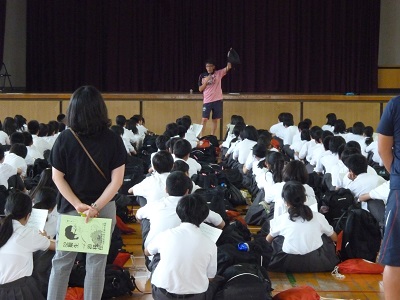 一泊移住前日ですが、今日も学校生活の基本「授業」をしっかりこなし、5時間目に体育館にて最終の確認を行いました。