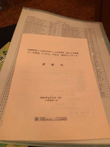 2月2日に大阪城公園近くのいずみホールで表彰式がありました。本校から〈優秀賞〉西宮綾乃さん。〈優良賞〉秋山愛璃沙さん、二木奏音さんが受賞しました。
