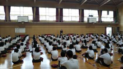 午後の部の始業式が始まりました。少し気温も上がり蒸し暑いですが、生徒たちは集中して話を聞いていました。2年4組・5組・6組の担任発表や学年所属の先生方の紹介がありました。