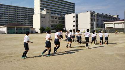 長らく活動ができなかった部活動が動き出しました。まだまだ本格的な活動ではありませんが、新1年生の生徒も見学しています。気温が上がり蒸し暑い中ですが、子どもたちは生き生きと活動しています。写真は囲碁将棋部、ラグビー部、サッカー部の様子です。