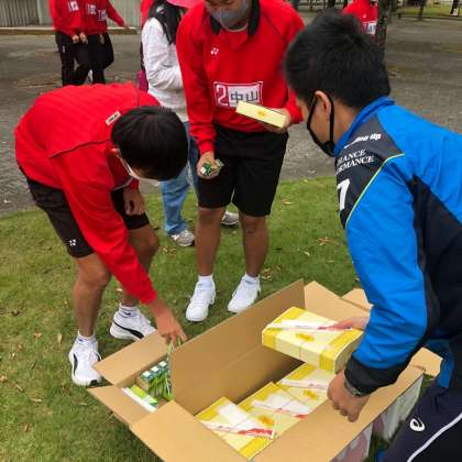 学年全体写真の後、お弁当を配布して、これから昼食です。