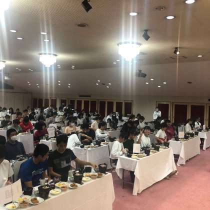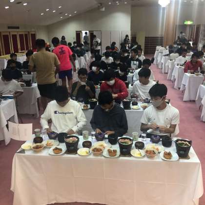 コロナ対策で正面を向いて、別室にも分けて夕食をとりました。