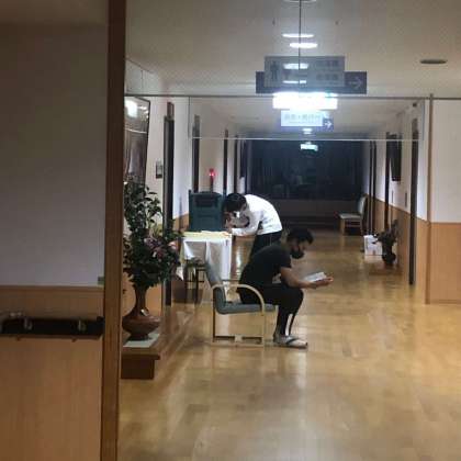 廊下には給茶器があり、マイコップで各々が飲むようになっています。
