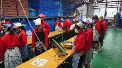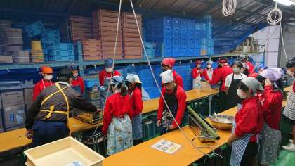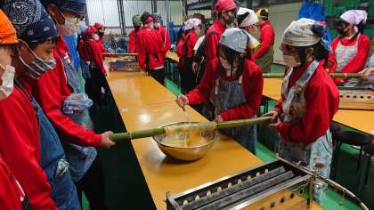 りんご狩りを選ばなかった人は、バームクーヘン作りに挑戦です。